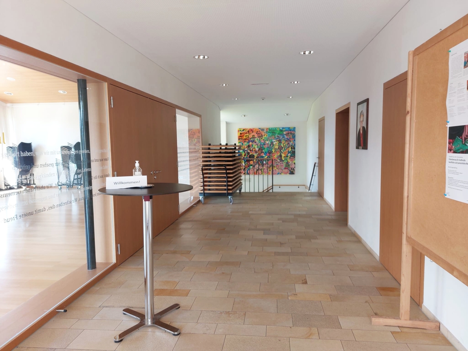 Der Eingangsbereich des Pfarrheims bietet auf dieser Ebene den Zugang zum Pfarrsaal, der Sakristei, der Pfarrsaalküche sowie WC und das natürlich behindertengerecht.